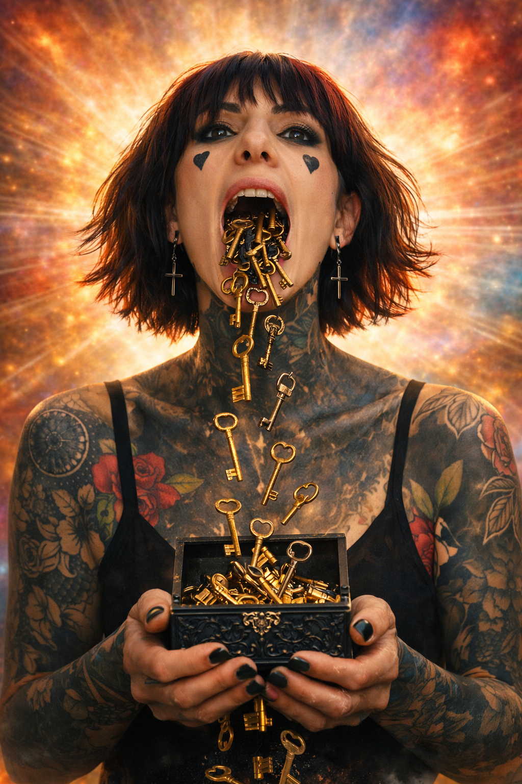 Gatekeeper is the ghost of borrowed belief. She knows every scripture, every system, every lineage—but she doesn’t live any of them. She teaches surrender but flinches at her own. She offers wisdom but starves herself of wonder.
